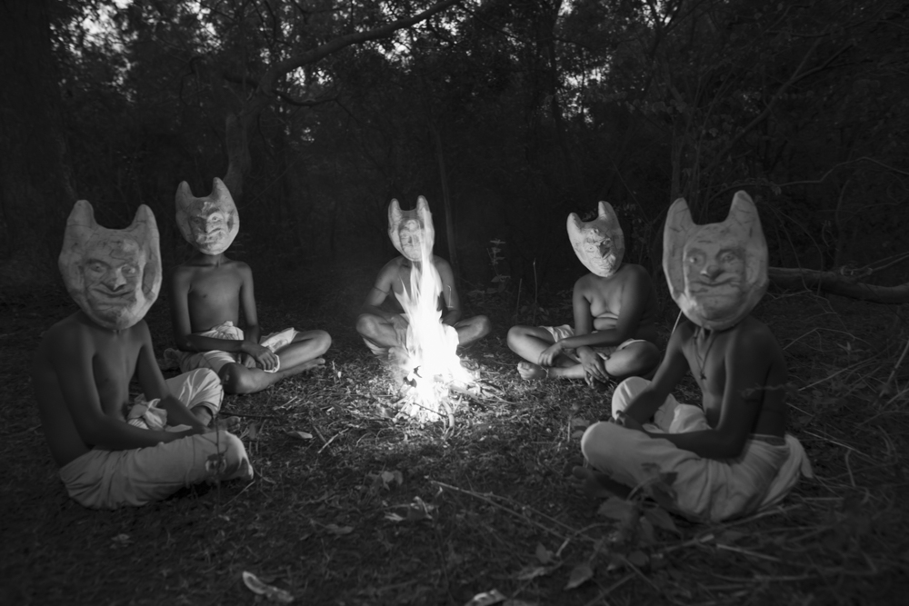 This work has been inspired by a Bohurupi artist from rural Bengal who embodies imaginary characters for a living. He introduced me to this world of spirits often found residing in abandoned spaces. They are victims of malnutrition, poverty and other malices that pushed them to the fringes. I was touched by these tales that alchemise the fear of the unknown into familial elements of everyday life laced with humour.